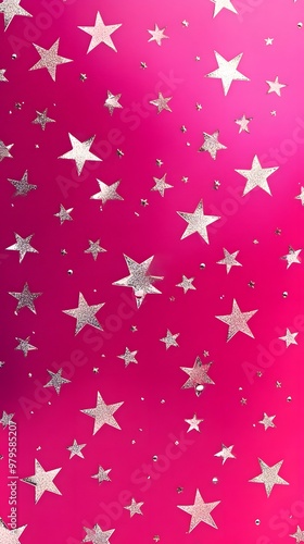 Silver Stars on Pink Background, Abstract Image, Texture, Pattern Background, Wallpaper, Cover and Screen for Smartphone, PC, Laptop, 9:16 and 16:9 Format