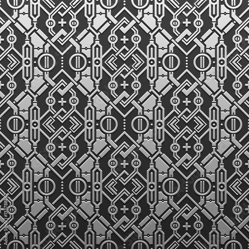 Silver/platinum metallic background with geometric pattern. Elegant luxury style.