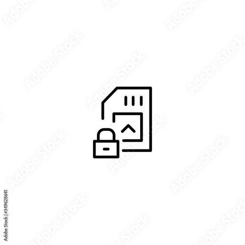 SIM card with lock sign. Mobile sim card security. Line icon design.