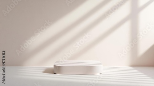 Simple 3D pedestal with soft lighting and smooth textures, minimalist platform, modern showcase