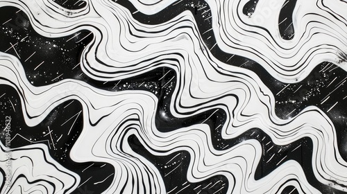 Simple abstract concept wavy white background black lines