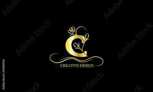 Simple and elegant floral monogram design template with letter C. Elegant logo design. Vector illustration