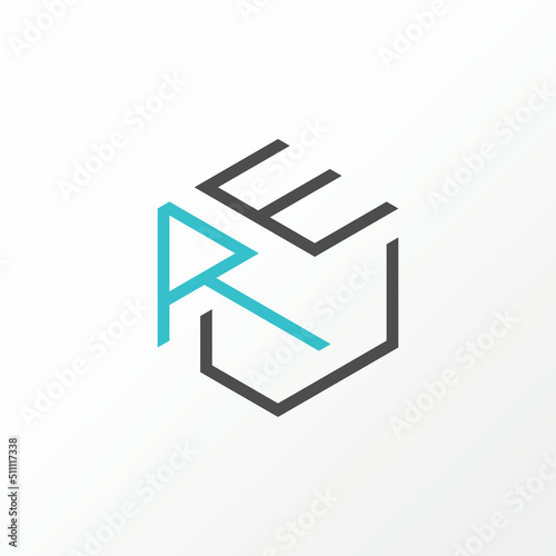 Simple and unique letter or word REU line font on 3D hexagon or box image graphic icon logo design abstract concept vector stock. Can be used as a symbol related to initial or monogram