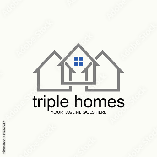 Simple and unique shape line triple house homes image graphic icon logo design abstract concept vector stock. Can be used as symbol related to property or living