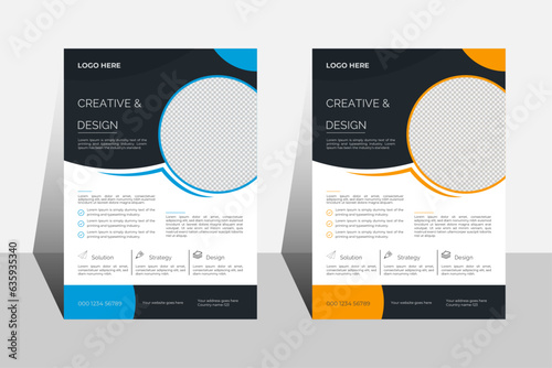 Simple attractive corporate business flyer template design with blue and yellow color.