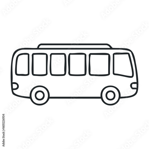 Simple black and white bus drawing with large windows and rounded shape. Vector illustration