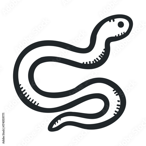 Simple black and white cartoon snake illustration on white background