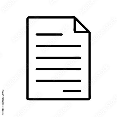 Simple Black and White Document Icon with Folded Corner and Text Lines