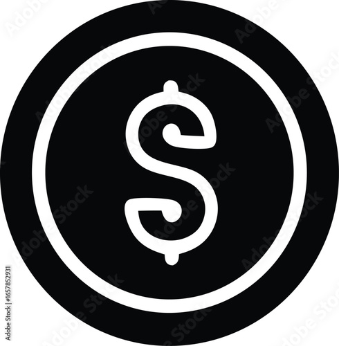 Simple black and white dollar coin silhouette vector icon. Business currency and finance symbol.