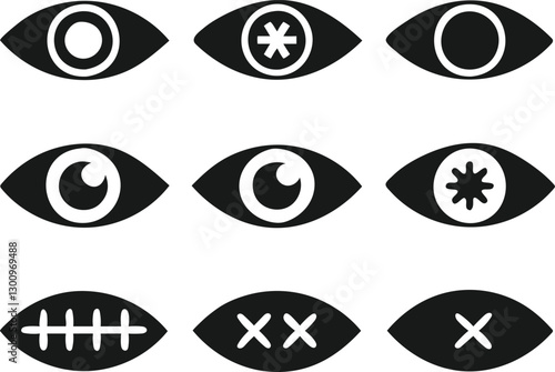 Simple Black and White Eye Icons Set
