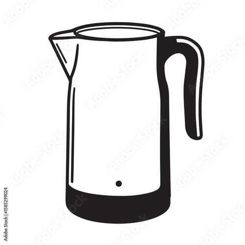 Simple black and white illustration of an electric kettle ready for boiling water preparing beverages