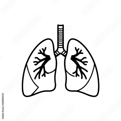 Simple Black and White Illustration of Human Respiratory System Lungs
