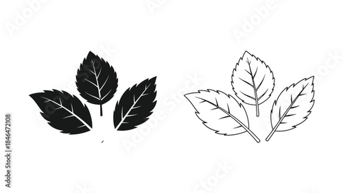 Simple black and white illustration of three distinct leaf arrangements