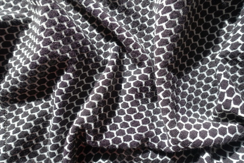 Simple black and white jersey fabric with honeycomb pattern in soft folds