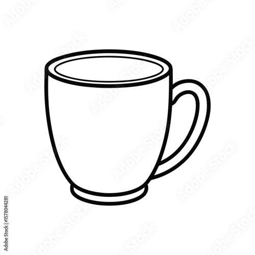 Simple black and white line drawing of a coffee mug isolated on white background