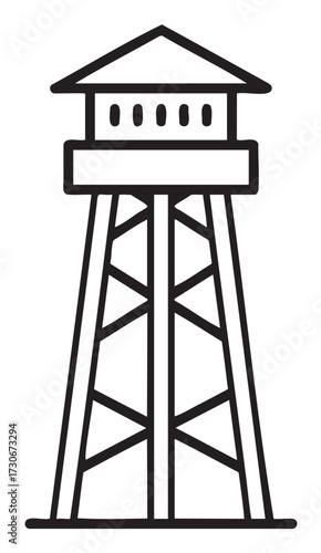 Simple black and white outline of a watchtower with a triangular roof - stock vector