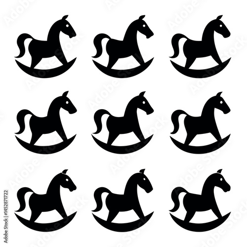 Simple Black and White Silhouette of Rocking Horses