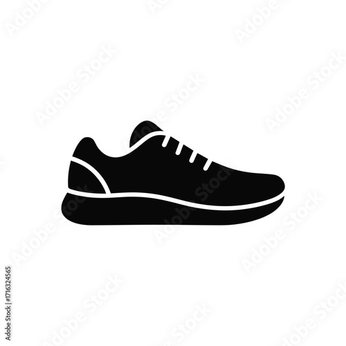 Simple black and white vector icon of a running shoe for sportswear and fitness silhouette vector illustration white background