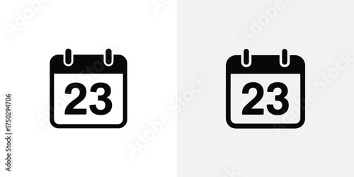 Simple Black Calendar Icon Showing the TwentyThird Day of the Month, SidebySide View