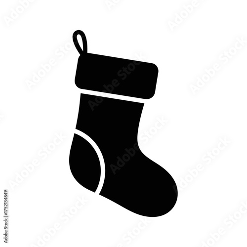 Simple black Christmas stocking glyph icon isolated on a white background.