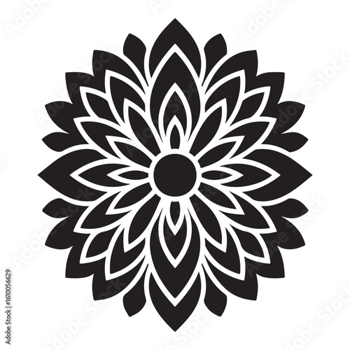 Simple Black Flower Mandala Silhouette Vector Art Illustration