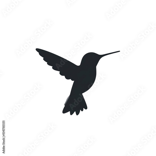 Simple Black Hummingbird Silhouette in Flight with Transparent Background