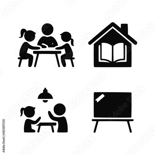 Simple Black Icons Home Schooling, Classroom, and Learning Activities