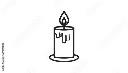 Simple black line art of a candle with a lit flame, presented on a circular base.