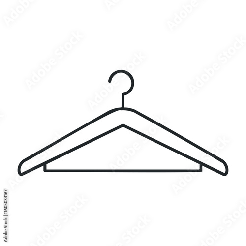 Simple black line drawing of a clothes hanger with hook on white background. Vector illustration