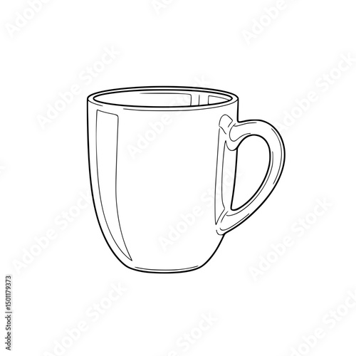 Simple Black Outline Drawing of a Ceramic Coffee Mug with Handle