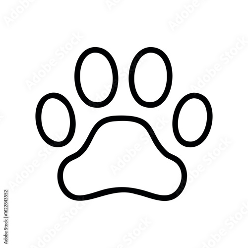 Simple black outline of an animal paw print illustration – stock vector icon in line style