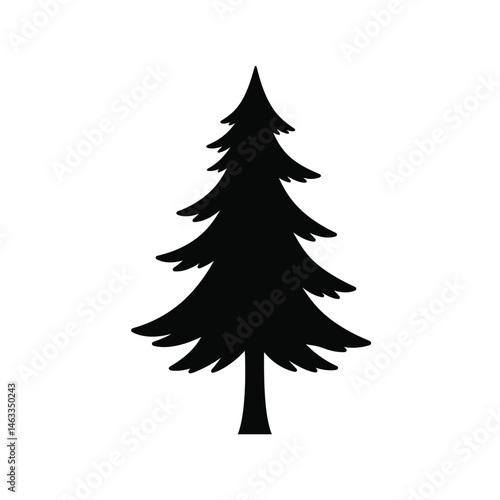 Simple black silhouette evergreen tree isolated on white background for design purposes
