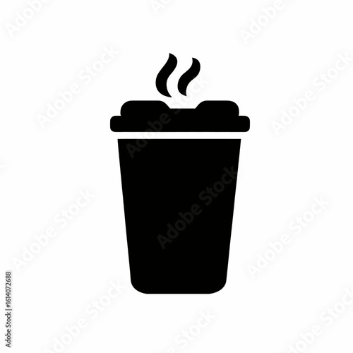 Simple Black Silhouette Icon of a Hot Beverage in a Paper Cup with Steam Rising