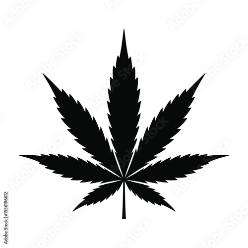 Simple black silhouette of a cannabis leaf on a white background