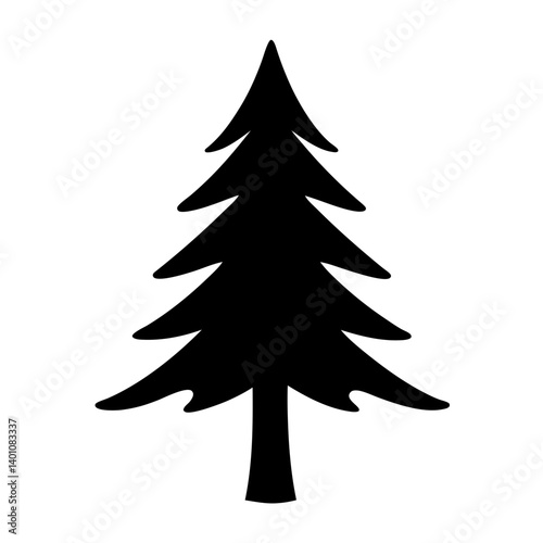 Simple Black Silhouette of a Pine Tree on White Background for Design