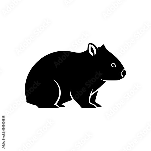 Simple Black Silhouette of a Wombat Standing on a White Background