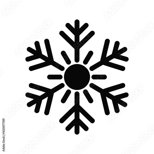Simple black snowflake icon on white background