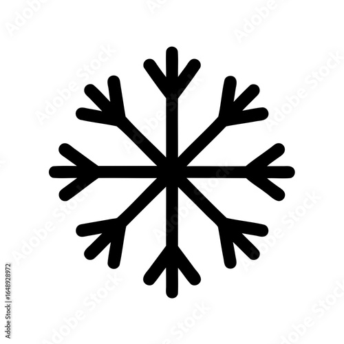 Simple black snowflake illustration on a white background, winter holiday season