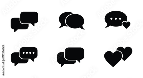 Simple black speech bubble and heart icons for communication design