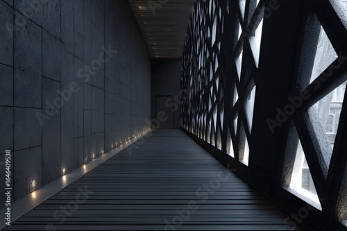 Simple Black-Lattice Walkway in Modern Gothic Design for Striking Architectural Pathways and Elegant Outdoor Spaces
