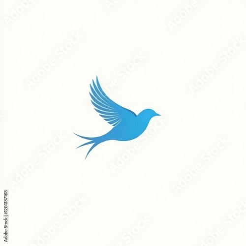 Simple blue bird in flight, abstract graphic