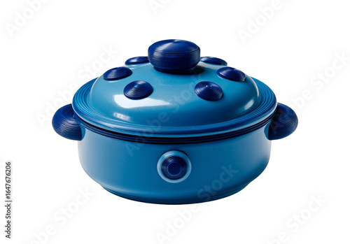 Simple Blue Cooking Pot with Lid Isolated on Transparent Background