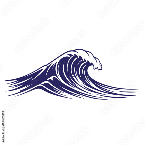 Simple blue wave illustration on white background representing ocean water movement