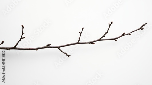 Simple branch with budding twigs against a plain background in a calm indoor setting