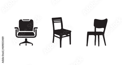 Simple chair icons in a modern flat style, featuring various types of seating silhouettes, vector illustration eps 10