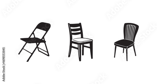 Simple chair icons in a modern flat style, featuring various types of seating silhouettes, vector illustration eps 10