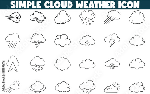 Simple Cloud Weather Icons Meteorology, Line Art, Design Elements