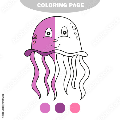 Simple coloring page. Vector drawing worksheet for preschool kids with easy gaming level of difficulty. Half painted picture with color samples