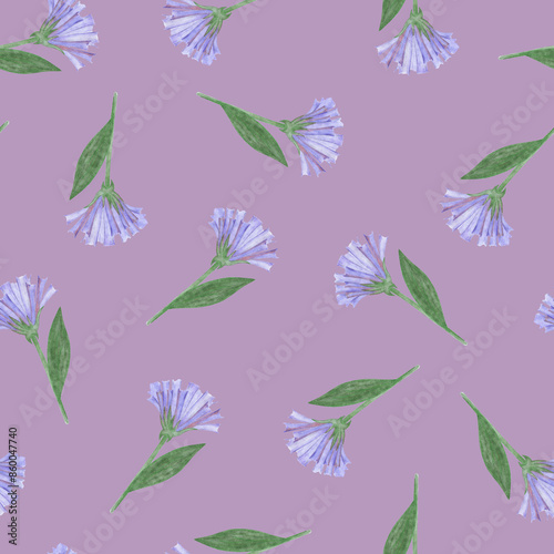 Simple Cornflower Floral Seamless Pattern on a Pink Background. Hand Drawn Simple Cornflower Digital Paper. Wild Meadow Flowers Drawn by Colored Pencils.