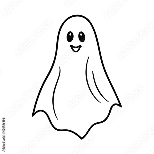 Simple cute ghost black and white illustration for halloween graphic design element